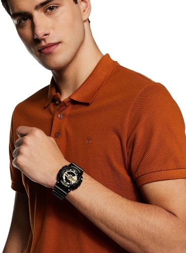 GA-110GB-1Aは、ブラックにゴールドを効かせたカラーリングとミラー加工を施しているのがポイントです。