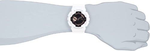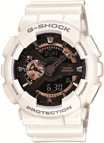 GA-110RG-7Aはホワイトとブラックのコントラストがクールなデザインで、ローズゴールドを差すことで柔らかさをプラスしています。