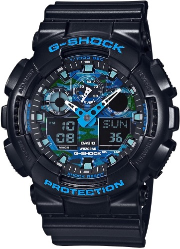 GA-100CB-1Aは、文字盤のカモフラージュ柄がデザインのポイントです。