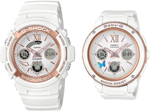 こちらは、同じ色で揃えられるG-SHOCKとBABY-Gのペアウォッチです。