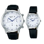 シンプルな文字盤と質の良いカーフストラップで、着け心地もよいペアウォッチです。