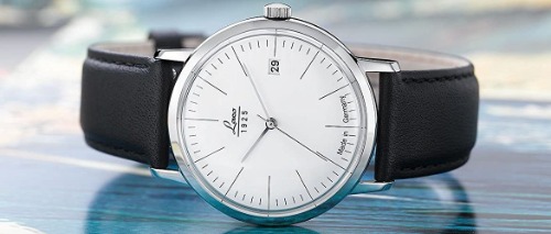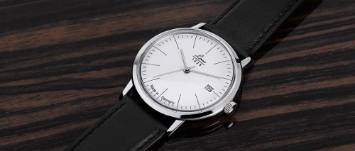 高級腕時計としては比較的手頃な価格で、派手さのないデザインと時間を見やすい文字盤が特徴的です。