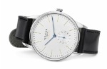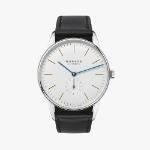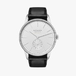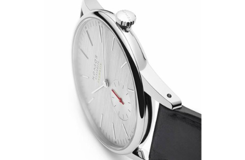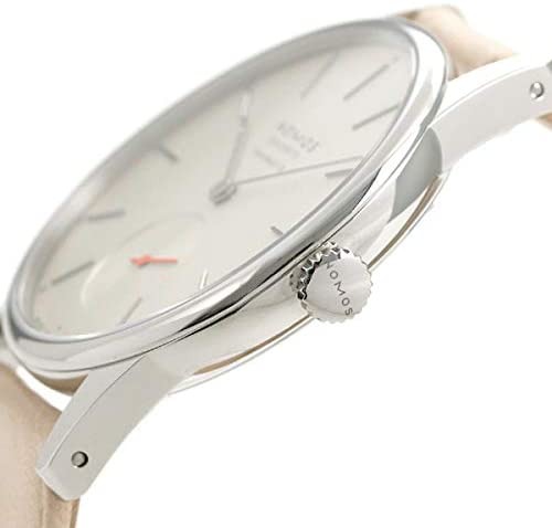 手巻きムーブメントにモノトーンカラーと、非常にプレーンな設計で作られたノモスオリオン38ホワイトOR1A3SW238。