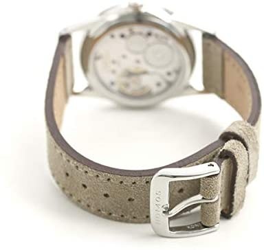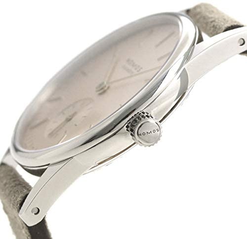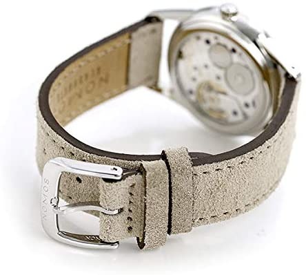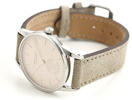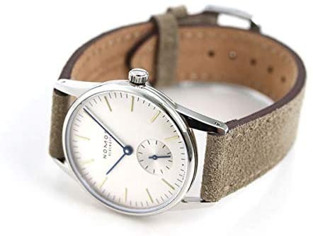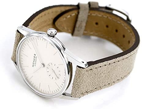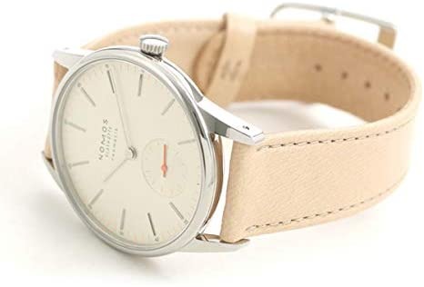 しなやかに腕にフィットするベージュカラーのベロアレザーを使用したノモスオリオン33ホワイトOR1A3SW233。