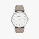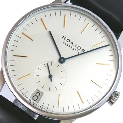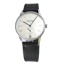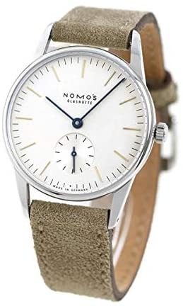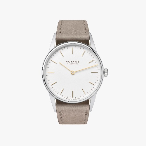 見やすい日付表示付きで実用性もばっちりなノモスオリオンデイトホワイトOR1B3SW238は、控えめながらも繊細な素材の輝きが大人っぽい腕時計です。