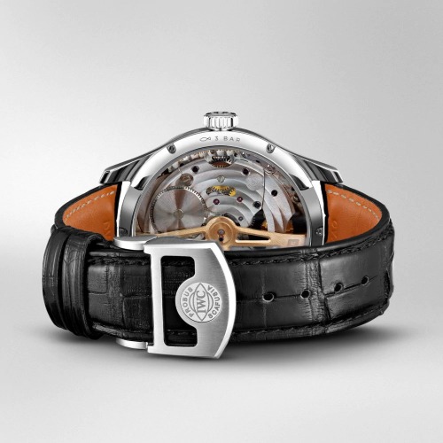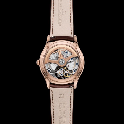 機械式時計で裏蓋や文字盤の一部がスケルトンになっており、トゥールビヨンの動きを目で見て楽しむこともできます。