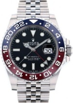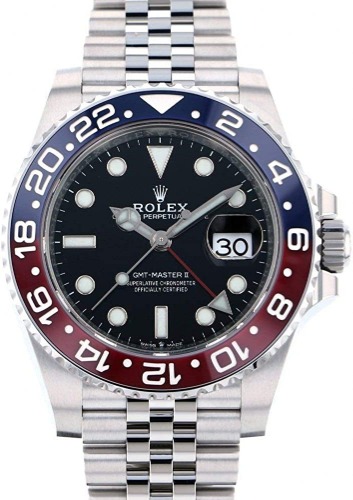 ロレックス GMTマスターII 126710BLROはホームタイムとローカルタイムの2つの時刻を読み取ることができる、大陸間旅行をコンセプトにした腕時計です。