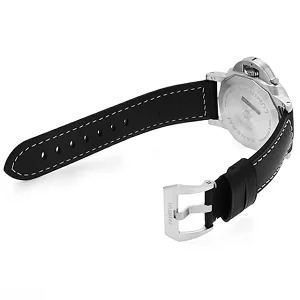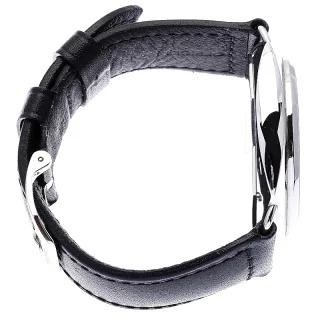 ケースサイズが44mmと大型のサイズですが、黒の文字盤とステンレス製のケースのおかげでビジネスでも十分着用できるモデルです。