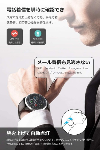 腕をあげるだけで画面は自動点灯し、見やすく大きな液晶はメールなども読みやすいでしょう。