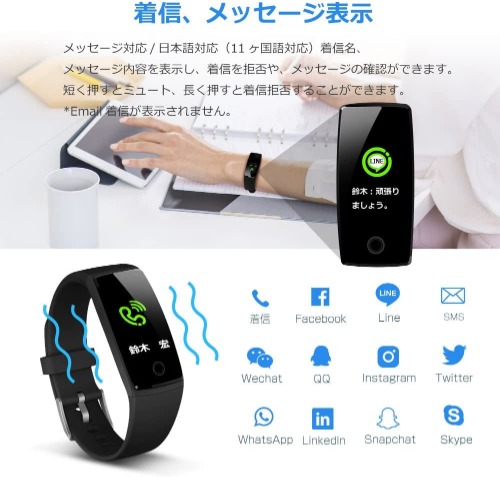 LINE対応、大画面、そしてさまざまなアクティビティに対応する多機能さを誇りながら、5,000円以下の低価格を実現したスマートウォッチです。