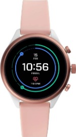 ピンクのシリコンベルトが着用しやすく、スマートウォッチの機能も充分でしょう。