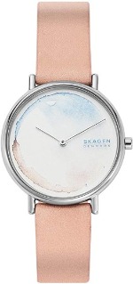 ダイヤルの優しい色合いが特徴的なスカーゲンのレディース腕時計です。