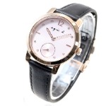 優しい色合いのピンクゴールドの文字盤やケースは、黒・白どちらのベルトでも良く似合うでしょう。