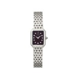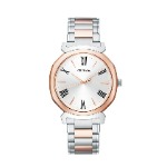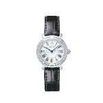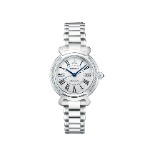 美しくデザインされたローマ数字にブルーのテンパー針、ステンレススティールのベゼルには24石のダイヤモンドが埋め込まれたラグジュアリーな腕時計は、レディースの手首を華やかに彩るでしょう。