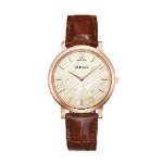 18kピンクゴールドのケースに上品な茶のクロコダイルバンド、木目金の文字盤と結びついた逸品は、限定数35本と少数販売で希少価値も高いでしょう。