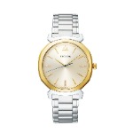 文字盤は時計的で若々しいシャンパンゴールド、3・6・9時の位置には小さなダイヤモンドがさりげなくあしらわれています。