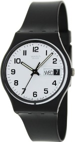 スウォッチ ONCE AGAIN GB743は、ホワイトの文字盤にブラックのブラスチックベルトがシンプルで着用シーンを選ばないモデルで人気です。