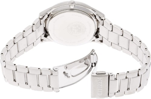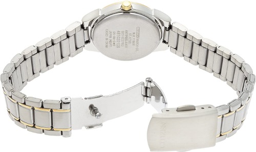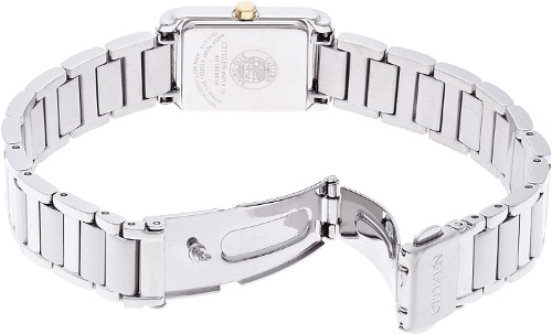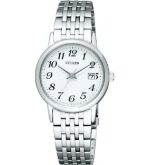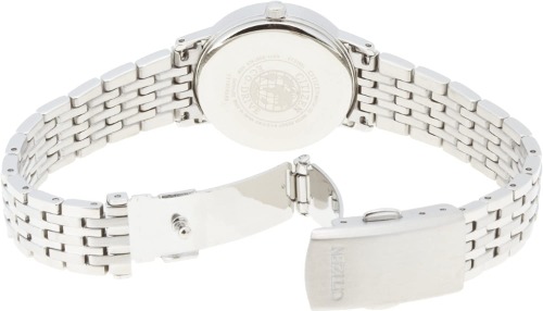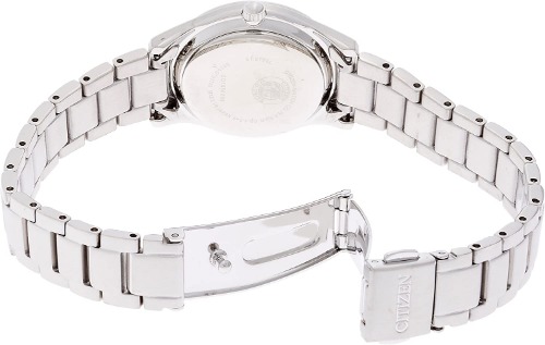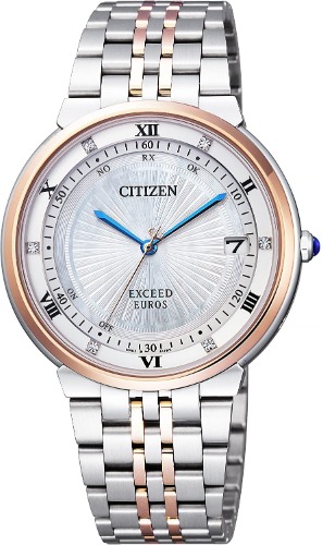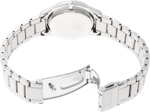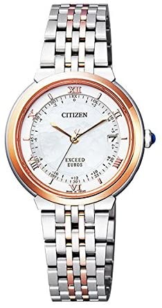 クールなデザインの多いエクシードシリーズの中でも、少し甘めなデザインに仕上げているシチズンのES1054-58W。白蝶貝の文字盤が複雑な色合いをかもし、大人らしい程よくスイートな色使いです。また、竜頭(リューズ)には人工ブルーサファイアがセットされているのなど、こだわりが詰まったレディース時計です。