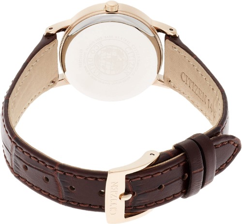 大人ぽく上品な風格があるシチズンEAD75-2942は、ワニ革の独特の風合いがおしゃれなアクセント。スタンダードなバーインデックスや針で、見やすさも考慮されています。レザーベルトのせいか、21gと大変軽いのもポイントです。