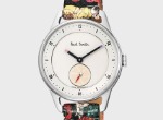 インデックスの6時と12時位置は、アーティストストライプのカラーを施し、ポールスミスの遊び心が感じられます。