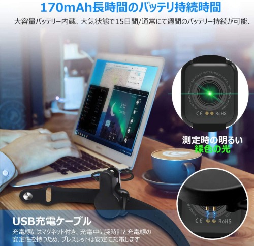 また、170mAh大容量バッテリーを搭載し、約2時間充電すれば最大7日の使用が可能です。