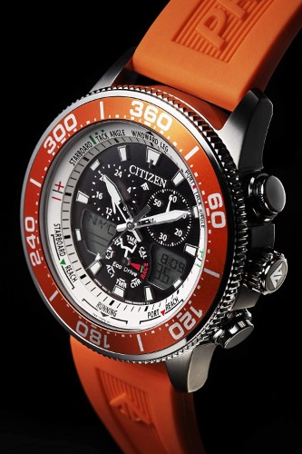 評価:ヨット競技に使う時計ですが、見た目に一目惚れ。オレンジのベルトとベゼルの存在感は抜群です。プロマスターのダイバーも持っていますが、防水時計は電池交換をすると防水チェックが必要です。その点、エコドライブは電池交換の必要がない(電池が劣化したら別ですが)ので安心です。