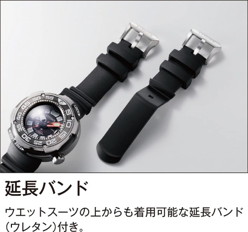 エコドライブという太陽光発電式クォーツが確かな精度で腕時計を支え、ビギナーズモデルでも最低潜水防水200mから、プロユースになると飽和潜水1000mまでの防水を持ったモデルもありますのでユーザーは安心して水中での使用ができます。