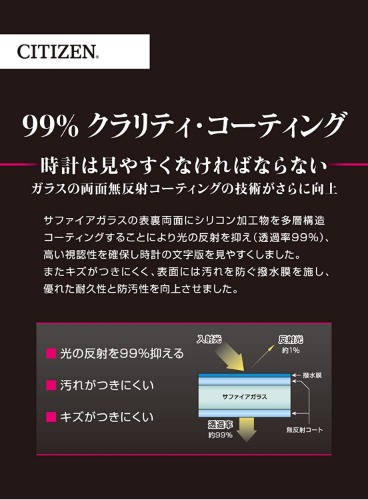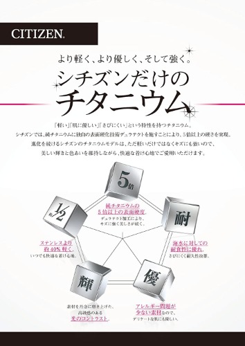 軽くて丈夫なチタンは加工が難しいのですが、シチズン(CITIZEN)の技術力でわずか6.96mmという薄さになっています。