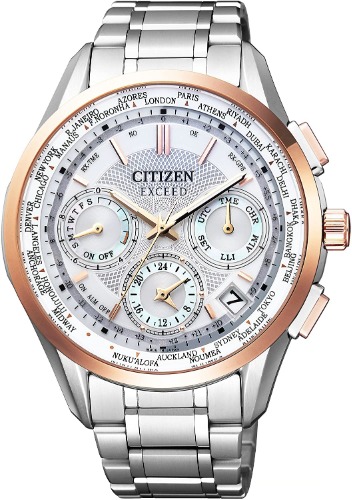 ケースにスーパーチタニウムを採用したシチズン(CITIZEN)エクシードCC9054-52Aは、ピンクゴールドとシルバーが美しいクロノグラフモデルです。