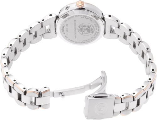 白蝶貝の文字盤には、11石のダイヤモンドが施され、シルバーとピンクゴールドのコンビがレディースの手首を優しく彩るでしょう。黒に見える秒針や針の縁取り・ロゴは濃い茶になっているのが、クラシカルな雰囲気も醸し出しています。