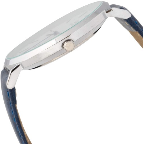 ホワイトのインデックスは視認性を高め、三角形の竜頭(リューズ)が面白いデザインです。