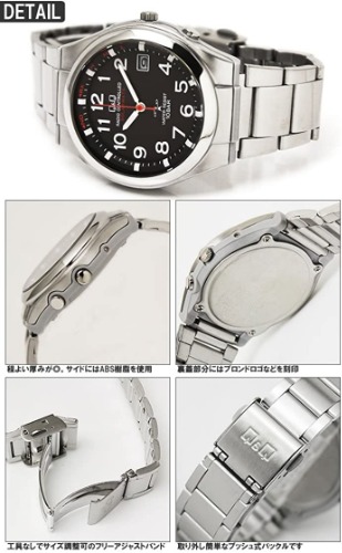 特徴 | ・Q&Qシリーズ ・ラウンドケース ・数字のインデックスが 立体になっている ・カラーバリエーション が豊富 ・人気色の ブラック&オレンジ | ・Q&Qシリーズ ・ユニセックスデザイン ・丸みをおびた インデックス ・高い視認性 ・シンプルで軽い | ・Q&Qシリーズ ・ビビッドな色合い ・樹脂製で非常に軽い | ・Q&Qシリーズ ・大きめの文字盤 ・ブラックとブルー のツートンカラー ・ホワイトのインデックス ・三角形の竜頭(リューズ) | ・Q&Qシリーズ ・6色のビタミンカラー インデックスを立体に配置 ・3本の針は原色を 使いアクセントに | ・Q&Qシリーズ ・ソーラー充電 ・電波時計 ・クロノグラフ ・ストップウォッチ機能 | ・Q&Qシリーズ ・視認性が高い バーインデックス ・43mmのビッグフェイス ・日常生活防水 ・合皮を使用した 傷みにくいベルト ・ケース・ベルト ともに軽量 ・イオンプレーティング加工 | ・Q&Qシリーズ ・43mmのビッグフェイス ・視認性の高い バーインデックスと3針 ・ネイビーブルーの合皮ベルト ・イオンプレーティング ・ビジネスシーン・カジュアル | ・Q&Qシリーズ ・メンズモデル ・ビッグフェイスで 女性にも人気 ・ブラウンの合皮使用 ・シルバーカラーの バーインデックス | ・Q&Qメンズモデル 「ファルコン」 ・視認性が高い ・24時間表記は赤で表現 ・デイト機能搭載 ・飽きがこない クラシカルな合皮腕時計 | ・Q&Qファルコン シリーズ ・バーインデックス ・型押し合皮ベルト ・ビジネスシーンOK ・デイト機能搭載 | ・Q&Qシリーズ ・電波時計 ・ソーラー充電 ・フルオートカレンダー搭載 ・クロノグラフ ・LEDライト搭載 | ・Q&Qシリーズ ・電波時計 ・ソーラー充電 ・パーペチュアルカレンダー ・充電警告機能搭載 ・基準位置確認機能 | ・Q&Qシリーズ ・伸縮性がある エクスパンション バンド採用 ・ソーラー充電 ・クイックスタート機能 ・充電警告機能 ・過充電防止機能 | ・Q&Qシリーズ ・電波時計 ・ソーラー充電 ・充電警告機能 ・過充電防止機能 ・パーペチュアルカレンダー ・基準位置確認機能 | ・Q&Qシリーズ ・タキメーター搭載 ・3時位置に曜日と 日付を表示 ・ステンレスベルト | ・Q&Qシリーズ ・太陽光、人工光 で電力を得る ソーラーメイト ・電波時計 ・エコマーク 認定商品 | ・Q&Qシリーズ ・ゴールドカラーの ケースにブルー文字盤 ・Q&Qの珍しい スクエアタイプ |