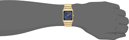 ゴールドカラーのケースにブルーの文字盤、輝くインデックスです。