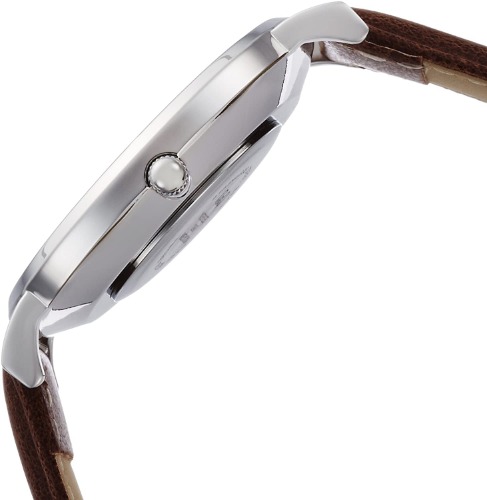 ころんとしたラウンドケースに、立体になった数字のインデックスがよく映えるデザインです。