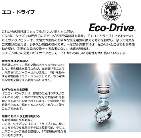 ソーラー充電式のエコドライブを搭載しているため電池交換は不要であり、「ふと気づくと時計が止まっていた」というトラブルもありません。