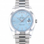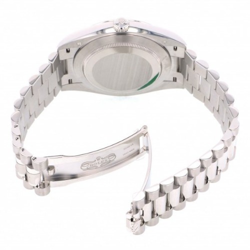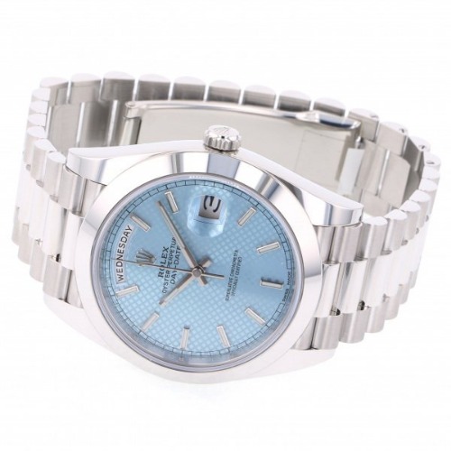 こちらのモデルは、ダイヤルがプラチナ専用のアイスブルーカラーで斜め格子プリントが施されています。