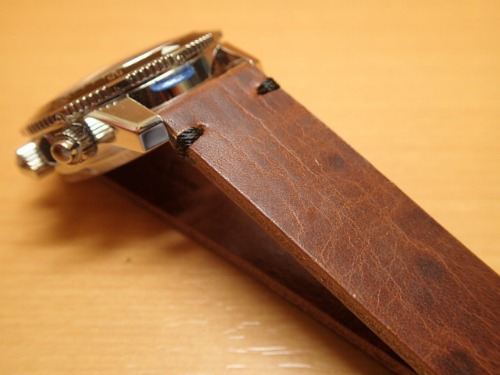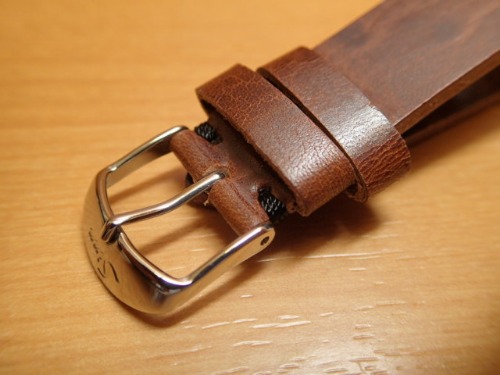 ベルト部分にはアレンジデザインされたロゴが焼印されています。