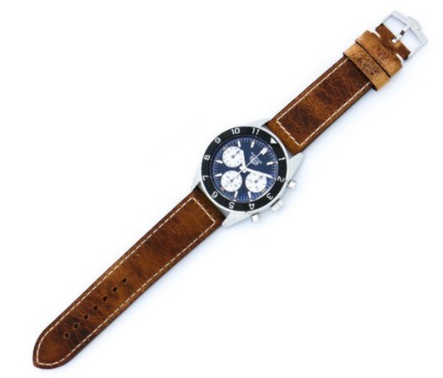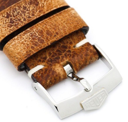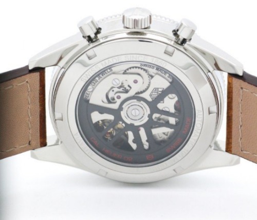 カーフレザーを使用したカジュアル系のタグホイヤーです。レザーの色合いがカーボーイ風で、ジーンズにTシャツといったカジュアルファッションにとても似合います。裏蓋がスケルトンになっているので、タグホイヤーのムーブメントを見て楽しむことができます。