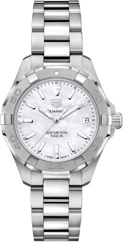 スポーティーな印象の腕時計が多いアクアレーサーですが、WBD1311.BA0740は白い真珠貝の文字盤がエレガントなモデルです。