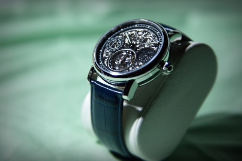 裏側もスケルトン仕様であり、トゥールビヨンの動きを裏側からも眺めることができるなど、どのアングルからも見ても飽きの来ないデザインです。