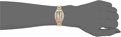 ゴールドカラーのチタンケースはトノー型で、ローマンインデックスがクラシカルな大人の魅力にあふれています。