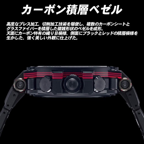 さらにベゼルにはカーボン素材を採用、アウトドアに強い20気圧防水とタフウォッチとしての理想形がここにあります。