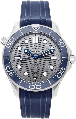 ダイバー300の210.32.42.20.06.001は、ブルーのセラミックベゼルと波の模様がついたグレーの文字盤が特徴です。