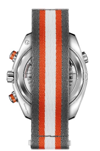 6時位置やケースバックのロゴ、秒針のエンブレムなど至るところにヨットレースの象徴となるデザインが盛り込まれています。