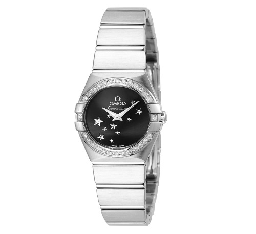 文字盤には星の形をした装飾がいくつか散りばめられており、ベゼルにはダイヤモンドが付いている高級感があるデザインが特徴的なオメガの腕時計です。小ぶりさいずなのでスーツ姿やワンピースなどの可愛らしいファッションにも似合います。