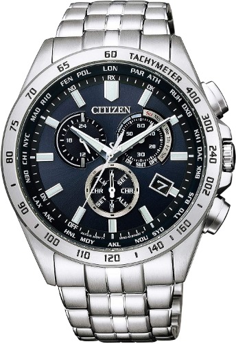 | シチズンエコ・ドライブクロノグラフ CB5870-91Lテキスト | ・1/1秒クロノグラフ(60分計) ・ワールドタイム機能(24都市) |