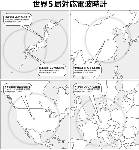 ただし、最近はアメリカ、イギリス、中国など、海外の送信局と対応した時計も発売されています。