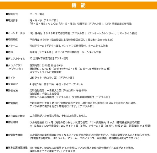 多機能というわけではないのですが、ソーラー電波時計として安心して使用できます。