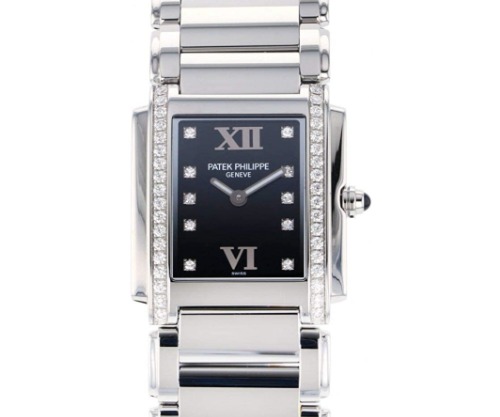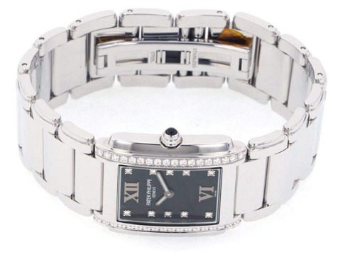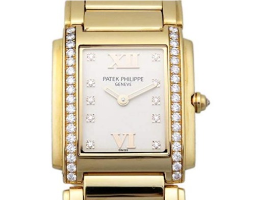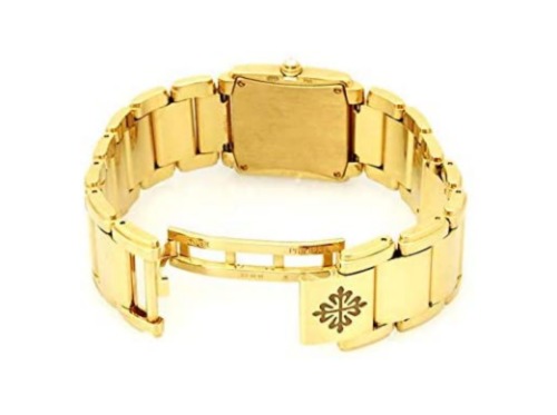 長方形のフォルムのケースにダイヤが装飾されており、ジュエリーのようなレディースモデルのパテックフィリップ時計です。お食事会やパーティーなどの華やかなシーンにも合わせられるデザインで、多くのセレブが愛用しています。