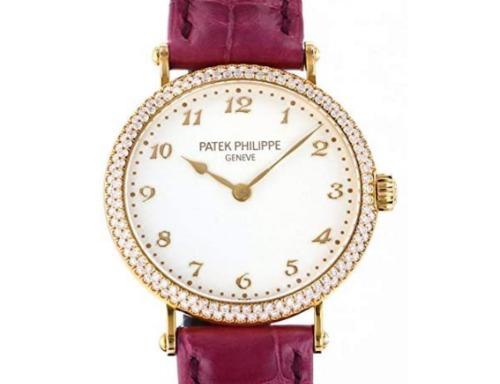 パテックフィリップの中でもゴージャスなレディースモデルで、ベゼルとインディテックスにはダイヤモンドが装飾されています。ゴールド素材にダイヤなので、アクセサリー感覚で身につけることができます。